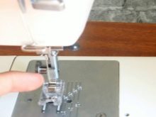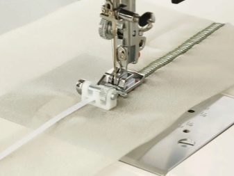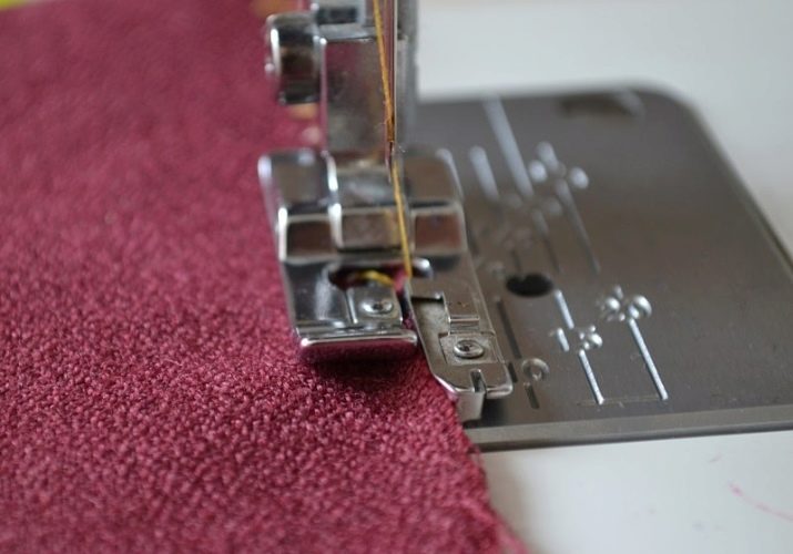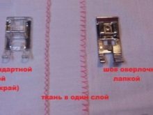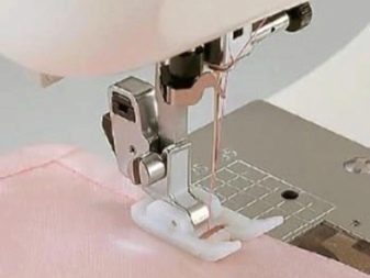 Po dokonaniu wyboru, pod stopką owerlokową należy położyć materiał tak, aby jego krawędzie przylegały do żebra. Następnie musisz utworzyć linię testową, kontrolując kierunek. Na podeszwie stopy znajduje się występ, na którym opiera się krawędź wolnego gwintu. Dzięki niemu owerlokowy szew jest piękny i równomierny. Podczas pracy z taką stopą należy pamiętać, że nie można wyciągnąć materii. Jeśli zignorujesz tę zasadę, linia będzie nierówna, a ponadto pojawią się na niej niechciane zespoły.