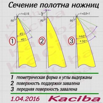 Kąt ostrzenia w stopniach dla wypukłych ostrzy wynosi 30-45 stopni, a dla linii prostych - 45-55 stopni określa się za pomocą specjalnego urządzenia.