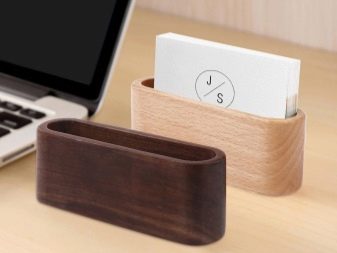 Etui na wizytówki na stole. Jeśli mężczyzna pracuje w biurze i często musi wymieniać wizytówki z partnerami i klientami, nie można obejść się bez kostki wizytówki. Znacznie ułatwi to zadanie znalezienia odpowiedniej wizytówki, zwłaszcza jeśli jest ich dużo.