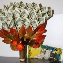 To wszystko. Rezultatem będzie bardzo interesujący prezent, który zdecydowanie podniesie nastrój urodzinowego mężczyzny. Podobna metoda jest dziś bardzo popularna. Podawanie pieniędzy facetowi jako prezent jest świetnym rozwiązaniem.