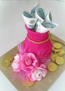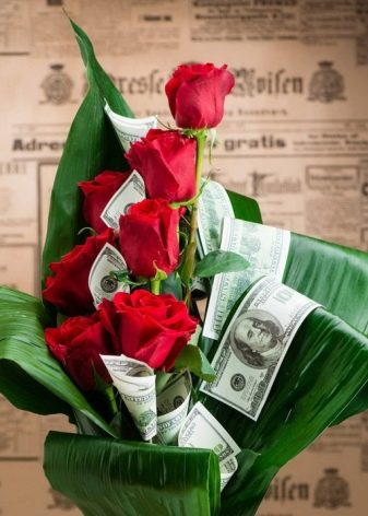 Jeśli pieniądze zostaną przekazane kobiecie, wskazane jest, aby „poprzeć je” pięknym bukietem pachnących kwiatów. Możesz włożyć małą torebkę z notatkami do samej aranżacji kwiatów.