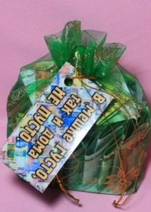 Taki niezwykły prezent można bezpiecznie przedstawić mężczyźnie. Zarówno dawcy, jak i dawcy spodoba się proces dawania, ponieważ tak miło jest dawać i otrzymywać prawdziwą torbę pieniędzy!