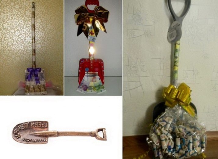 W sklepach z pamiątkami i wielu sklepach internetowych można się spotkać dekoracyjna łopata, która jest do przyjęcia, aby dać urodziny mężczyzny wraz z pieniędzmi. W tym przypadku implikuje się chęć „wiosłowania pieniędzy za pomocą łopaty”. Zamiast łopaty z pamiątkami możesz podnieść prostą dziecięcą łopatę, przymocować do niej małą kieszeń i włożyć do niej banknoty, aby wyglądały nieco inaczej. Taki prezent z pewnością zadowoli urodzinowego mężczyznę lub urodzinową dziewczynę.