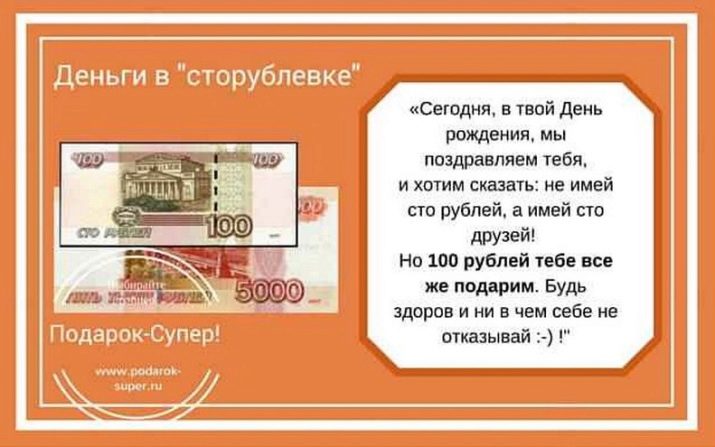 Istnieje inny oryginalny sposób na pokonanie prezentu gotówkowego. On się nazywa „Pieniądze za sto rubli”.