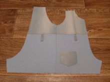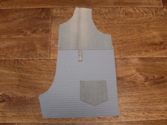 - Szyjemy razem części przednie na pół: zszyć jarzmo do dołu. Jeśli chcesz dodać kombinezon z naszywanymi kieszeniami i szlufkami na pasek, musisz je uszyć na tym etapie pracy.