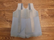 - Teraz musisz połączyć dwie połówki kombinezonu. Zszyj je w bocznych szwach, a następnie sflashuj je na maszynie do pisania.