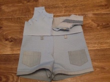 - Odwracamy wnętrze na zewnątrz, zamiatamy go ręcznie, a następnie robimy linię mety na maszynie do pisania. Kombinezon jest gotowy!