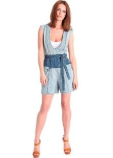 Drelichowy kombinezon z wstawkami z innych materiałów również dobrze wygląda. Lepiej jest wybrać materiał, który ma bardzo różną fakturę od samego produktu, na przykład elegancką koronkę lub szorstką skórę.