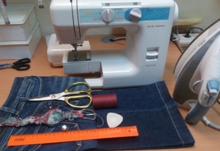 Rozważ proces szycia kombinezonu ze starych dżinsów na przykładzie modelu dla dzieci. Jeśli nie masz pewności co do własnych umiejętności, zaleca się rozpoczęcie nauki nowych sztuczek z dziecięcych rzeczy, ponieważ będą one wymagały mniej materiałów i czasu.