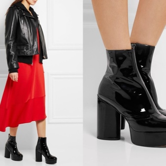 Jeśli buty są lakierowane, najlepsza jest suknia o średniej długości. Ale nie zaleca się noszenia krótkich spódnic i sukienek do takich butów.