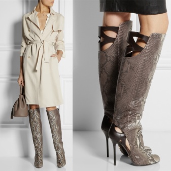 W tym sezonie modne są buty z elementami dekoracyjnymi imitującymi skórę gada i strusia. Te buty są szczególnie dobre w kolorze szarym, a także bordowym. Te buty podkreślą indywidualność, ale jednocześnie będą wyglądać powściągliwie i zwięźle.