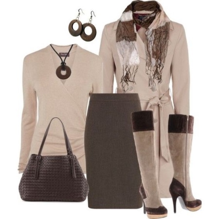 - Wysokie buty z szpilką lub stałym obcasem, przycięty sweter lub surowa koszula, spódnica w kształcie litery A - doskonały zestaw biznesowy. Lepiej wybrać płaszcz nie niższy niż kolana o prostym lub rozkloszowanym kroju. Masywny zegarek ze skórzanym paskiem i skórzaną bransoletą dopełni ten wizerunek kobiety biznesu.