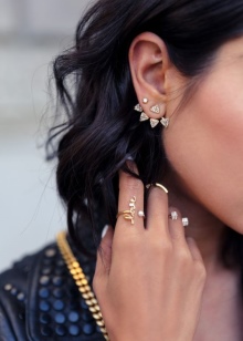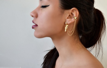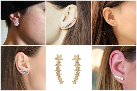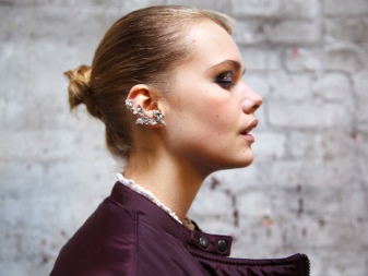 Jeśli dodasz mankiety z łańcuszkami lub zawieszkami, które zdobią zarówno uszy, jak i szyję, możesz stworzyć atrakcyjny „weekendowy” wizerunek. Specjalny rodzaj przywiązania, który nie wpływa na płatek ucha, pozwoli kobiecie czuć się najbardziej uroczo i atrakcyjnie przez cały wieczór.