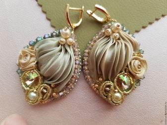 Takie ręcznie wykonane modele obejmują kolczyki sutasz wykonane ze wstążek. Do stworzenia tej biżuterii potrzebne będą: wstążki w dwóch kolorach, nożyczki, koraliki w kilku kolorach, igła do koralików, nici do szycia, okrągłe szczypce, 3 koraliki, 2 pierścienie i 2 kolczyki.