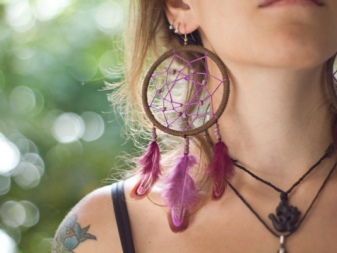 Kolczyki Dreamcatcher to amulet jubilerski pochodzenia indyjskiego. Główną funkcją takiego talizmanu jest ochrona śpiącej osoby przed złymi snami i złymi myślami. Koło jest symbolem ludzkiego życia, a przeplatanie się wątków jest identyfikacją zrządzeń losu.