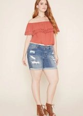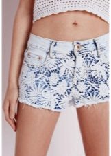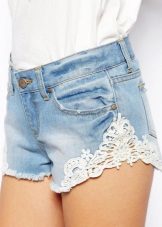 Często występują szorty z koronką i marszczeniami, ozdobione wzdłuż dolnej krawędzi. Nawiasem mówiąc, taki wystrój pozwoli ci lekko przedłużyć szorty, jeśli są zbyt krótkie. Ponadto takie modele o romantycznym wystroju są ozdobione dżetów lub koralików.
