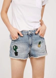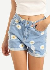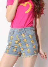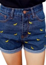 Jeansowe szorty z nadrukiem są rzadkie, ale pomagają rozcieńczyć letni strój jasnością. Popularne modele z bananami, w kwiatki z innymi ciekawymi wzorami.
