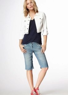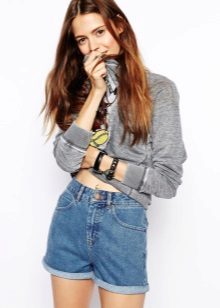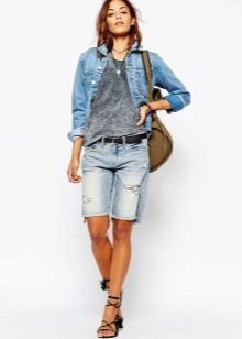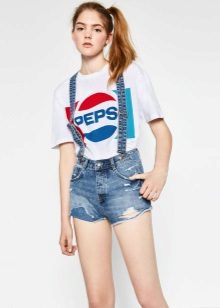 Często można znaleźć szorty uzupełnione dżinsowymi paskami. Stwarza to interesujący efekt, jakbyś miał na sobie kombinezon, co sprawia, że obraz jest szczególnie interesujący. Możesz nosić taki produkt z jasną koszulką lub koszulą.
