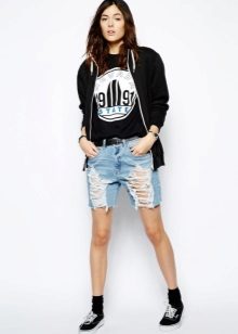 Demonstracyjnie brutalne, wyglądają szczególnie imponująco na kruchych dziewczynach. Mogą to być celowo szorstkie workowate lub luźne szerokie szorty, które podkreślają wdzięk kobiecej sylwetki.