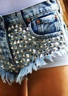 Wiele dziewczyn lubi szorty z „agresywnym” wystrojem. Mogą to być modele z kolcami i nitami, które wyglądają dobrze.