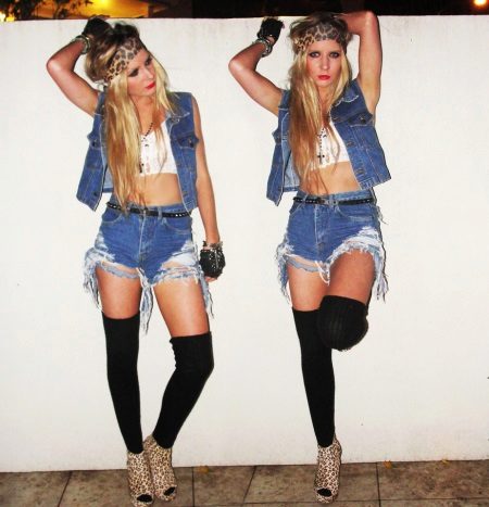 Kombinezon, składający się z jeansowych szortów i kamizelek, wygląda bardzo interesująco. Taki zestaw można pokonać na różne sposoby, tworząc romantyczny wygląd, w stylu casual lub country.