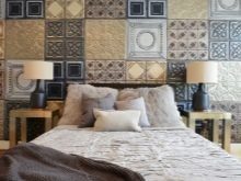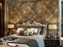 Specjaliści w to wierzą podczas naprawy w sypialni nie można przykleić wszystkich rodzajów tapet. Ich konstrukcja powinna być umiarkowanie chwytliwa i bez pretensjonalności. Dobre płótno to takie, w którym możesz zrelaksować oczy. Dla większej rewitalizacji przestrzeni nie należy uciekać się do mocnych akcentów. Nie powinny być zbyt duże i jasne, główną rolę odgrywa właściwa rola. Aby stworzyć drogie i bogate wnętrze, zaleca się wykończenie jednej lub dwóch ścian prawdziwą skórą; pikowany aksamit jest nieco tańszy, ale nie mniej atrakcyjny.