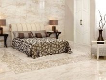 Podłoga sypialni jest często pokryta płytkami porcelanowymi. Jest bardzo trwały i odporny na zużycie. Jednak dla wygody zimowej konieczne będzie zainstalowanie ciepłej podłogi lub położenie dywanów. Gres porcelanowy może być granitowy lub marmurowy.