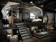Zaawansowana stylistyka jest również kompatybilna z metalowymi elementami konstrukcyjnymi. W takim przypadku konieczne jest poszukiwanie wyraźnego wyrazu futurystycznych motywów. Jeśli zostanie wybrany brutalizm, będziesz musiał użyć: