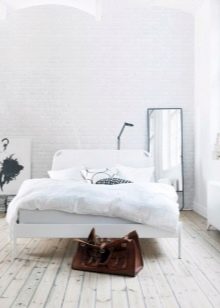 W sypialni takie wady korka jak zniszczenie przez wilgoć lub niska wytrzymałość mechaniczna są nieznaczne. Należy wziąć pod uwagę tylko podwyższoną cenę, jednak biorąc pod uwagę zalety materiału, jest to całkowicie uzasadnione. Bardziej tradycyjną opcją dla Rosji jest jednak ceglany mur w sypialni. Jest to szczególnie powszechne w pokojach w stylu loftu. Ale to nie oznacza niezgodności z innymi dziedzinami projektowania.