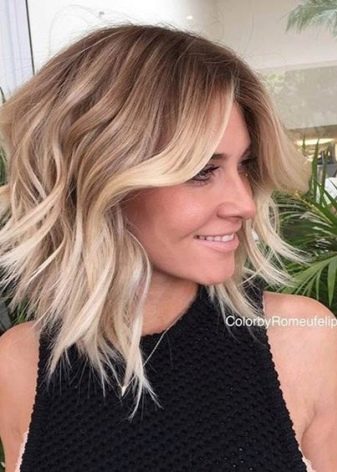 Przy średniej długości włosów można bawić się techniką i eksperymentować z opcjami barwienia loków. „Kare” pozwala na pomysły o klasycznym jednolitym kolorze, a także na modne plamy w jasnych kolorach, przy użyciu nowych metod barwienia i pasmowania.