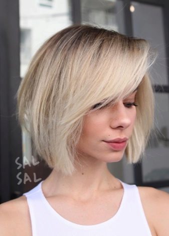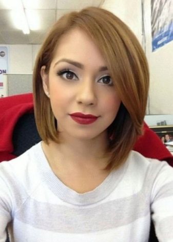 Pulchne kobiety powinny wybrać „kwadrat” z przedłużeniem lub „fasolą”. Różnorodne pomysły z asymetrycznie przyciętymi lokami będą dobrze wyglądać.