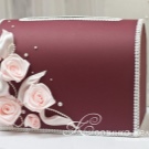 Ślubna komoda obszyta materiałem, na którym znajduje się zdjęcie, wygląda wspaniale. W tym przypadku najlepiej zastosować jasne kolory: biały, mięsisty, złoty, brzoskwiniowy, a obraz powinien mieć bardziej kontrastowy odcień. Ze względu na to, że samo pudełko jest już dość jasne, należy unikać dużej liczby biżuterii, ponieważ obecność kilku łuków w tej samej kolorystyce byłaby idealną opcją.