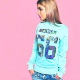 Bluza jest uniwersalna, dzięki czemu można ją łatwo połączyć z niemal każdą rzeczą w szafie. Dżinsy, legginsy, szorty, spódnice, spodnie, spodnie capri - wszystko to będzie pasować do bluzy. Sukienka dresowa jest noszona całkowicie przez ciebie, możesz wybrać do niej tylko legginsy, legginsy lub rajstopy w zimnych porach roku. Pod tym produktem wydłużone koszule lub sukienki wyglądają interesująco.