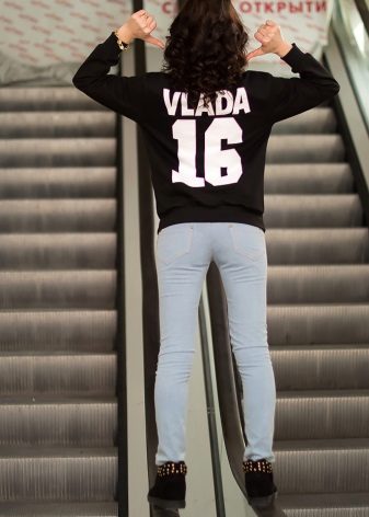 Osobista bluza może być wykonana w dowolnym stylu, dzięki czemu możesz stworzyć z niej ogromną liczbę zdjęć. Najważniejszą rzeczą do zapamiętania jest to, że z tym produktem chcesz zwrócić uwagę na napis, co oznacza, że nie powinieneś ukrywać go nie tylko za pomocą akcesoriów i toreb, ale także włosów.