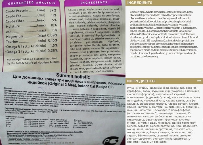 Jedzenie składa się z naturalnego mięsa, mąki z jagnięciny, kawałków pstrąga. Brązowy ryż i wodorosty są wykorzystywane jako produkty wtórne.