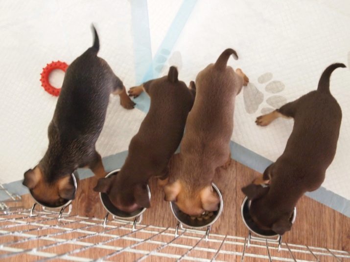 Jeśli wcześniej zwierzęta były karmione gotowymi mieszankami ze sklepu, to w wieku dwóch miesięcy nie zaleca się silnej zmiany diety, aby nie powodować stresu w ciele. W takim przypadku terierom zabawkowym należy podać gotowe konserwy dla małych ras i gotową mieszankę mleczną.