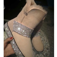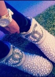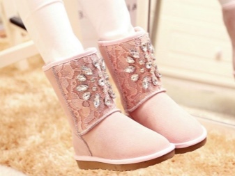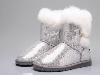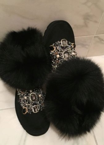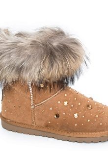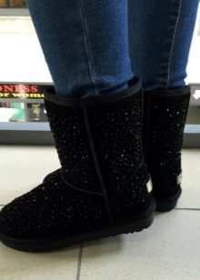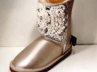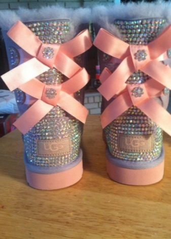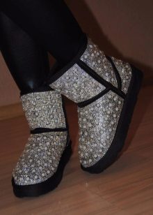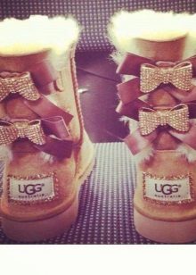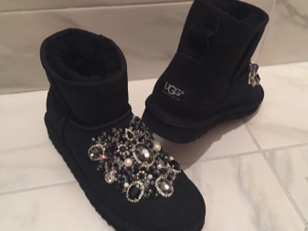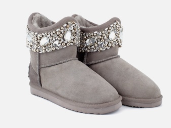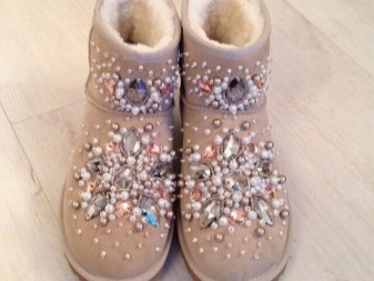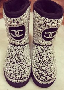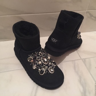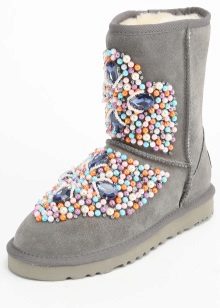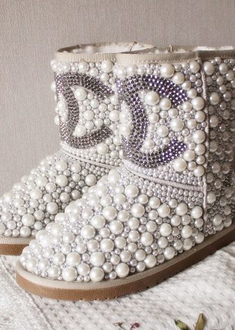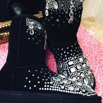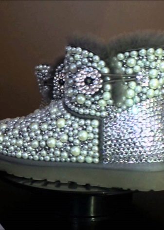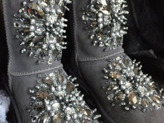 Miękkie haftki z dżetów wyglądają uroczyście, elegancko i efektownie. Wielu producentów robi buty ugg za pomocą jasnej i błyszczącej biżuterii.