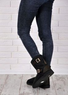 - Buty wykonane z owczej skóry, ozdobione dżetów, wyglądają odważnie i jasno, dlatego przed zakupem należy rozważyć, z jakimi ubraniami będą się harmonijnie łączyć. Takie oryginalne buty wymagają starannego doboru odzieży.