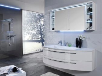 Zastanów się z góry, co będziesz przechowywać w szafkach, ile półek potrzebujesz, jakie powinny być (zamknięte lub otwarte). Współcześni producenci oferują również możliwość wyboru podgrzewanego lustra, wbudowanego zegara, termometru. Te dodatki zwiększają wartość zestawu słuchawkowego, ale nie wszyscy go potrzebują.