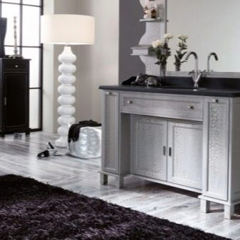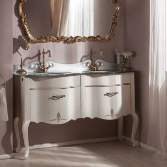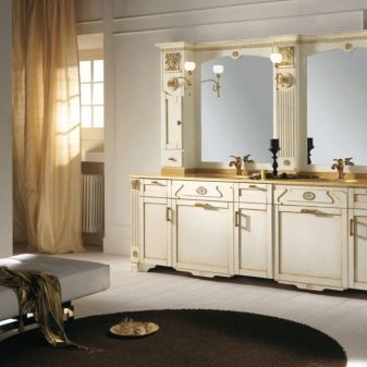 Wykonywane są wykwintne klasyczne zestawy w spokojnych, zwykle ciepłych odcieniach (mleczny, beżowy, brązowy). Większość z nich ma krawężnik na kręconych nogach. Niektórzy po prostu stoją na podłodze. Zamontowane modele w stylu vintage nie. Czasami fasady są ozdobione patyną. Ponadto powierzchnie produktów są zawsze matowe.