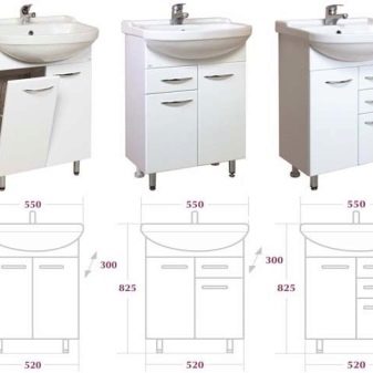 Wymiary moydodyr różne. Jeśli mówimy o szafkach stojących na podłodze, standardem jest wysokość od 80 do 100 cm. Najlepszą opcją jest 90 cm. Jeśli weźmiemy pod uwagę modele zawieszone, ich wysokość może być dowolna. Zazwyczaj są to szafki o wymiarach 50-60 cm, chociaż istnieją węższe opcje.