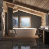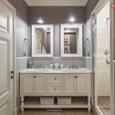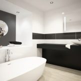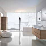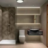 Jeśli pokój jest ozdobiony nutami nowoczesności, wszystkie nowomodne gadżety i nowe przedmioty w dziedzinie hydrauliki są ukryte za skromną dekoracją, która musi tworzyć przytulność i dawać komfort. Co więcej, w takiej łazience powinien być wygodny z praktycznego punktu widzenia - wszystkie powierzchnie powinny być odporne na wilgoć i łatwo zmywać z zanieczyszczeń.
