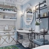 Jeden z obszarów kraju, najbardziej wygodny i miły. Nadruki na dekoracji w postaci małych kwiatów, suszonej gałązki lawendy na stole przy zlewie, różowe i błękitne ręczniki z marszczeniami pomogą uosabiać ducha francuskiej wsi. Meble i instalacje hydrauliczne powinny być tak proste, jak to tylko możliwe, ale jasne. Mile widziane jest ich barwienie w białej i jasnej brzoskwiniowej tonacji. Należy unikać ciemnego drewna.