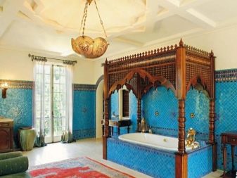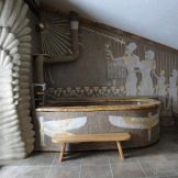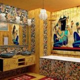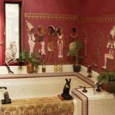 Kierunek, który nie powinien zadawać pytań. Łazienka w stylu egipskim powinna przypominać pałac faraona - Ściany w kolorze słońca, ozdoby odpowiadające starożytnej kulturze egipskiej, dekoracje w postaci popiersia Nefertiti lub Tutanchamona uzupełnią wnętrze. Możesz również użyć żywych palm, co sprawi wrażenie, że Twoja łazienka jest oazą na Saharze.