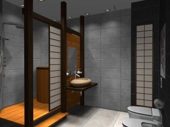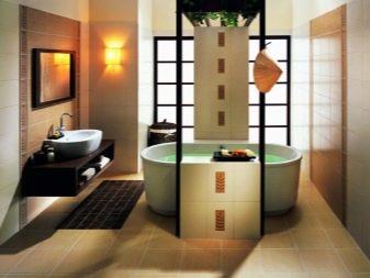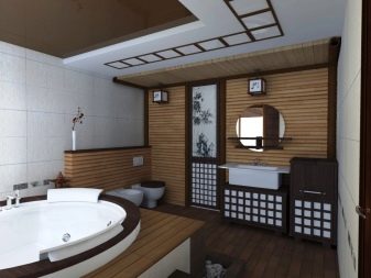 Łazienki w Japonii są tak proste, jak to możliwe, ale funkcjonalne. Ścisłe linie, minimalna liczba dekoracji połączona jest z instalacją wodną spełniającą najnowsze technologie. Aby przekazać ducha Krainy Wschodzącego Słońca, możesz udekorować stół umywalką z gałęzią sakury lub wykonać wystrój przy pomocy płytek z hieroglifami wokół wanny.