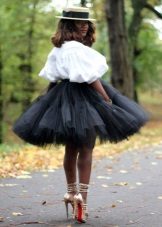 Łuk młodzieżowy pozwala na połączenie takiej spódnicy z jasnymi trampkami, butami ze sznurowaniem, mokasynami i baletami. Uroczysty i klubowy strój z amerykańską spódnicą wygląda dobrze z lakierowanymi szpilkami.
