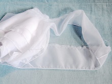 - Kolekcja pierwszego poziomu przezroczystej tkaniny do szerokości jarzma, a następnie przeszycie wolnej krawędzi jarzma i wierzchu tkaniny pierwszego poziomu.