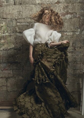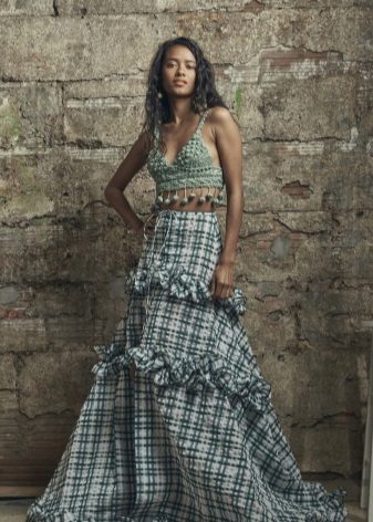 W modelu maxi „American” możesz podnieść dyskretny top na szerokich ramiączkach, wykonany w kontrastowym kolorze. Jeśli długość spódnicy jest średnia, bardziej nadaje się do obcisłej góry w tym samym tonie, co „amerykański”.