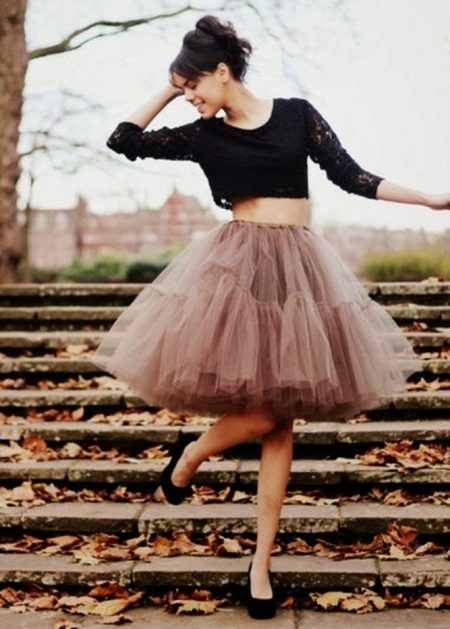 Jeśli dziewczyna chce stworzyć delikatny romantyczny wygląd, wybiera spódnicę w pastelowej palecie, na przykład jasnoszarej, karmelowej lub brzoskwiniowej.