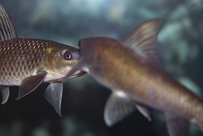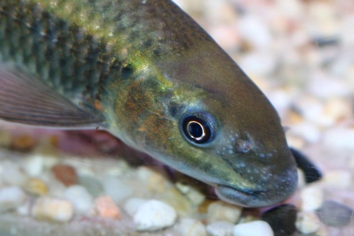 Labeo é um peixe com um corpo fino e oblongo e lados ligeiramente achatados. As costas são arqueadas mais fortes que a barriga.